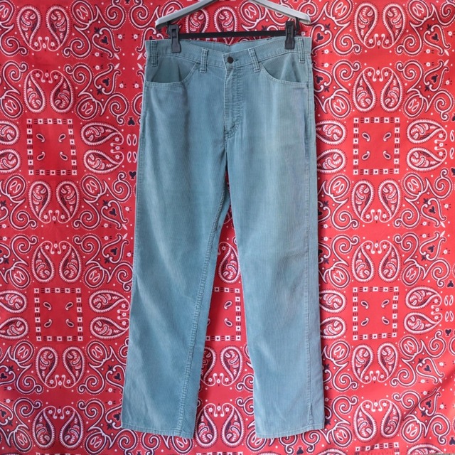 item:LEVIS 519 CORDUROY PANTS color:TURQUOISE(カラー品番1541) material:COTTON/POLYESTER condition:GOOD detail:80's リーバイス519コーディロイパンツ カラー品番1541の珍しい色味 過去に一度しか見た事ありません ジップはLEVIS ピスネーム欠損 Levi's 519 Corduroy Pants Color code 1541 - a rare shade I've only seen this once before Zipper reads LEVIS Patch label missing size:W35×L30 身幅: 着丈: ☆採寸は素材/伸び縮みにより多少の誤差がございます。 ☆ヴィンテージアイテムになりますので、傷やリペア等の使用感ある商品もございます。 ———————————————— ☆Measurements may vary slightly due to material/stretch/shrinkage. ☆Since these are vintage items,