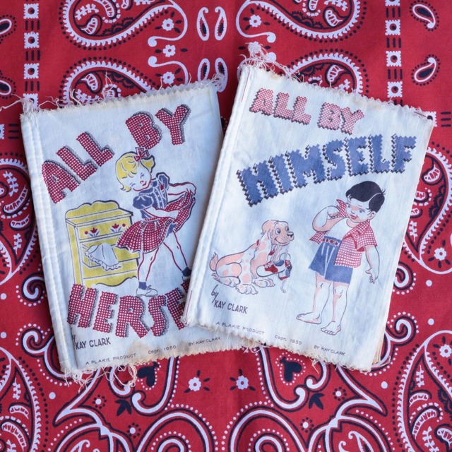 item:COTTON BOOK ALL BY MYSELF color:WHITE material:COTTON condition:SO SO detail:50's 50年代の子供用の教育本 男女1セット コットン地で出来ており、プリントは水性インク 中にはボタンやジップ、靴紐の結び方など 女の子の方のボタンが1個欠けています 多少シミ等があります size:縦-23/横-17.5 身幅: 着丈: ☆採寸は素材/伸び縮みにより多少の誤差がございます。 ☆ヴィンテージアイテムになりますので、傷やリペア等の使用感ある商品もございます。 ———————————————— ☆Measurements may vary slightly due to material/stretch/shrinkage. ☆Since these are vintage items, some items may have scratches, repairs, or other
