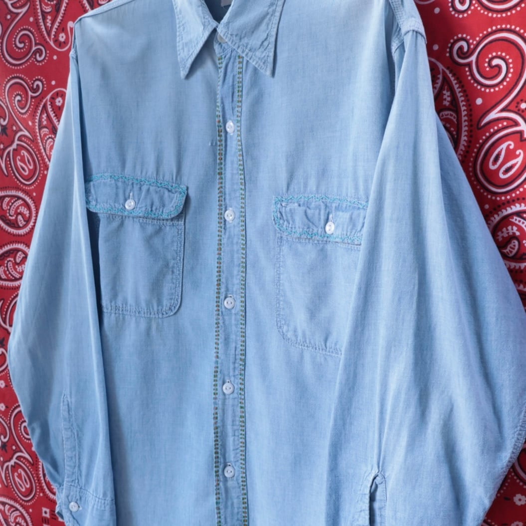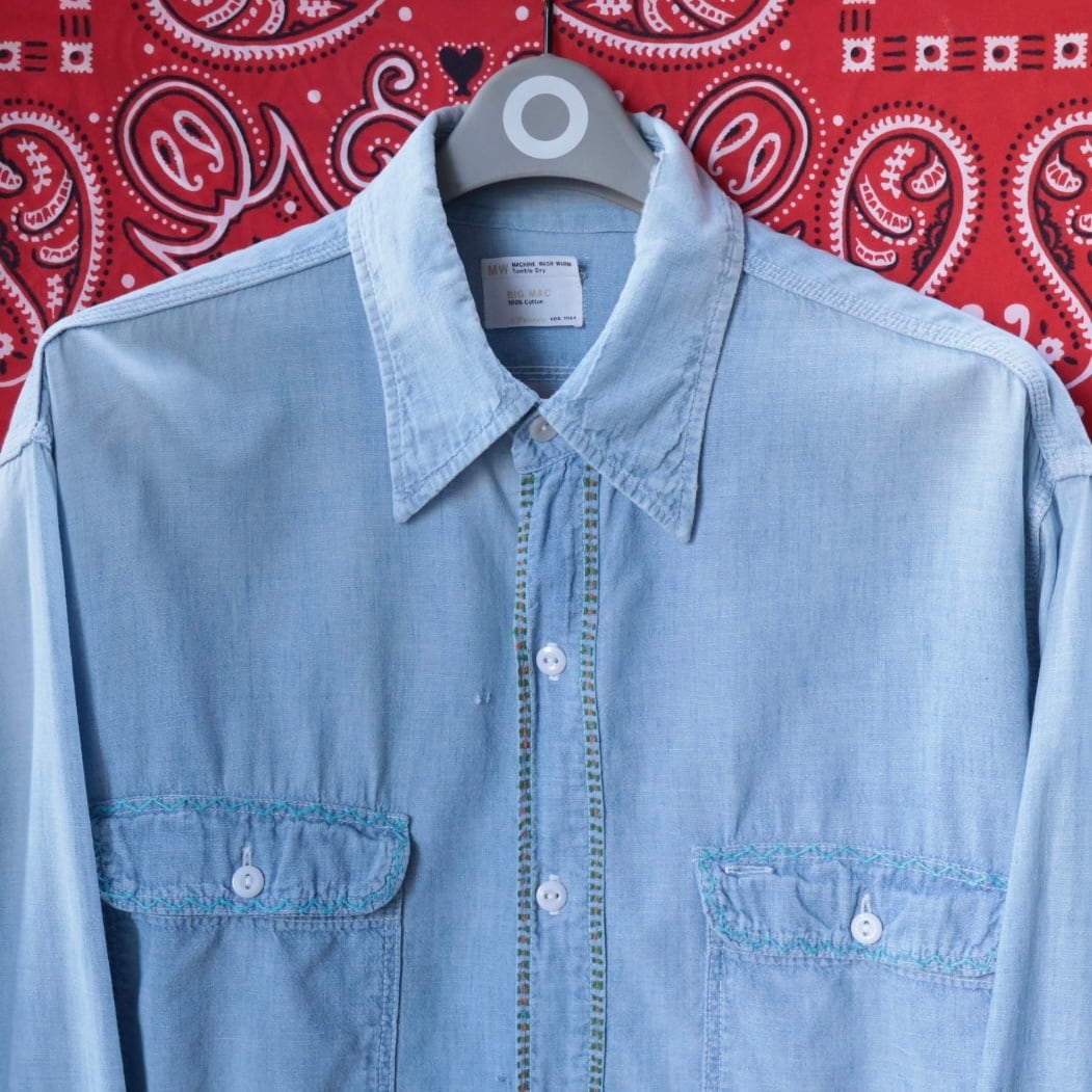 60's〜 BIG MAC CHAMBRAY EMBROIDERY BIG SHIRT