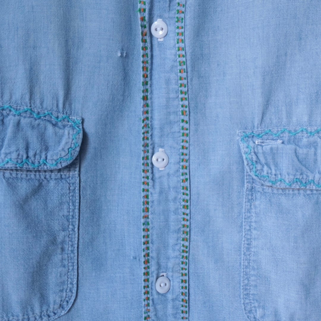 70年代を感じるハンド刺繍のシャンブレー
